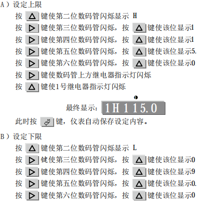 偏差上限是指超過(guò)上限的偏差值,實(shí)際報(bào)警值=上限+偏差上限。例: 上限為115.0℃,偏差上限為4.0℃ 實(shí)際報(bào)警值=115+4=119℃ 偏差下限是指超過(guò)下限的偏差值,實(shí)際報(bào)警值=下限-偏差下限。