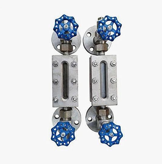 儀表的上下閥上裝有法蘭接頭,與容器連接構(gòu)聯(lián)通器,透過(guò)玻璃板直接指示容器,液位,“夾套型”設(shè)有加熱或冷卻裝置。該裝置加熱時(shí)可用蒸氣,冷卻時(shí)可用循環(huán)水,這樣可以調(diào)節(jié)流動(dòng)性能,夾套型接管尺寸ZG1/4內(nèi)螺紋。