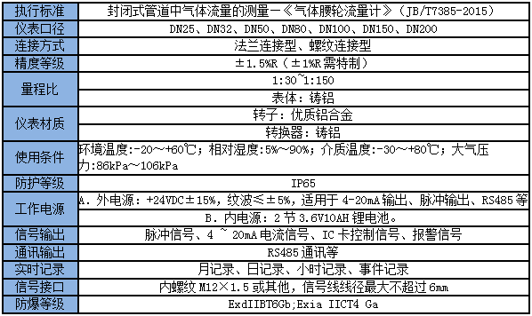 3、氣體羅茨流量計(jì)技術(shù)參數(shù)