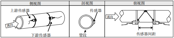 外夾式超聲波流量計安裝方式共有三種。這三種方式分別稱為V法、Z法和N法。 一般在小管徑100~300mm(4"~12")時可先選用V 法;V法測不到信號或信號質(zhì)量差時則選用Z法;管徑在 300mm(12")以上或測量鑄鐵管時應(yīng)優(yōu)先選用Z法。