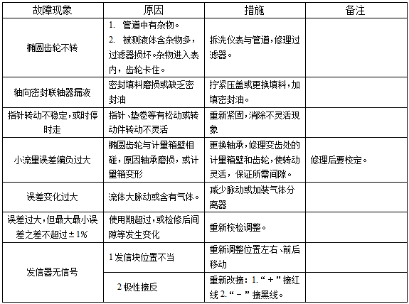 三、橢圓齒輪流量計常見故障及排除方法