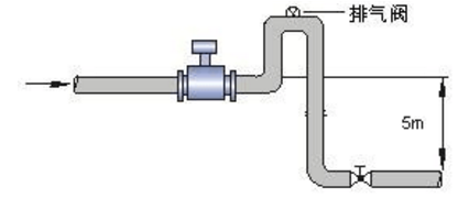 4、在管道落差超越5米時,在電磁流量計的下游應(yīng)裝置排氣閥;