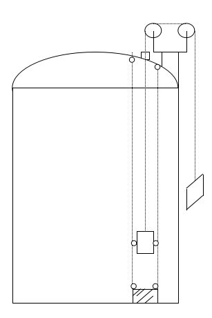 1、依照兩個導(dǎo)向滑輪的間距,在容器上方開三個孔,分別焊接導(dǎo)向螺栓管和滑輪導(dǎo)管;在容器外側(cè)焊接標尺支架,高度以堅持兩個導(dǎo)向滑輪水平為準