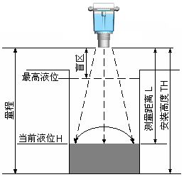 超聲波液位計量程指儀表能夠測量的距離,安裝高度TH應小于量程。