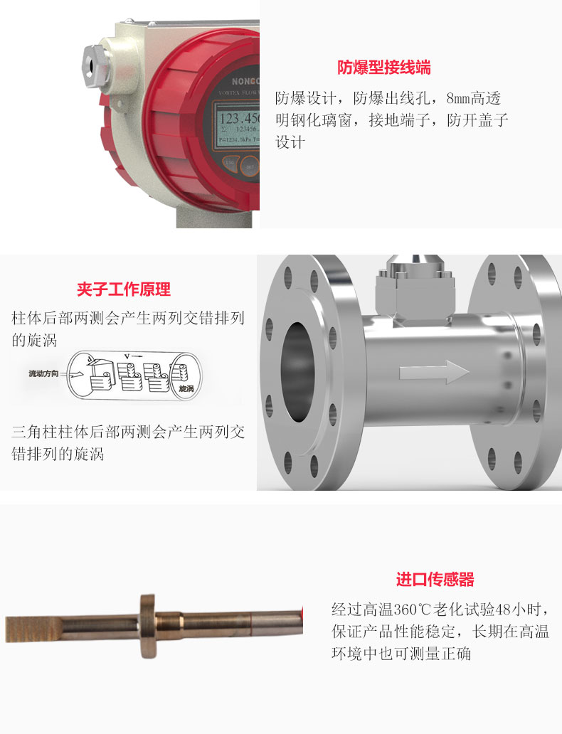 2、感應元件在線更換-某些廠家的感應元件與渦街發(fā)生體合二為一,看似簡單的設計卻給實際使用帶來不便。因為一旦感應部分失效,則需要將管道內介質排空泄壓后更換部件,影響生產。完善的設計應該是將二者分開,這樣就可以單獨更換感應部分,而無需將介質排空。