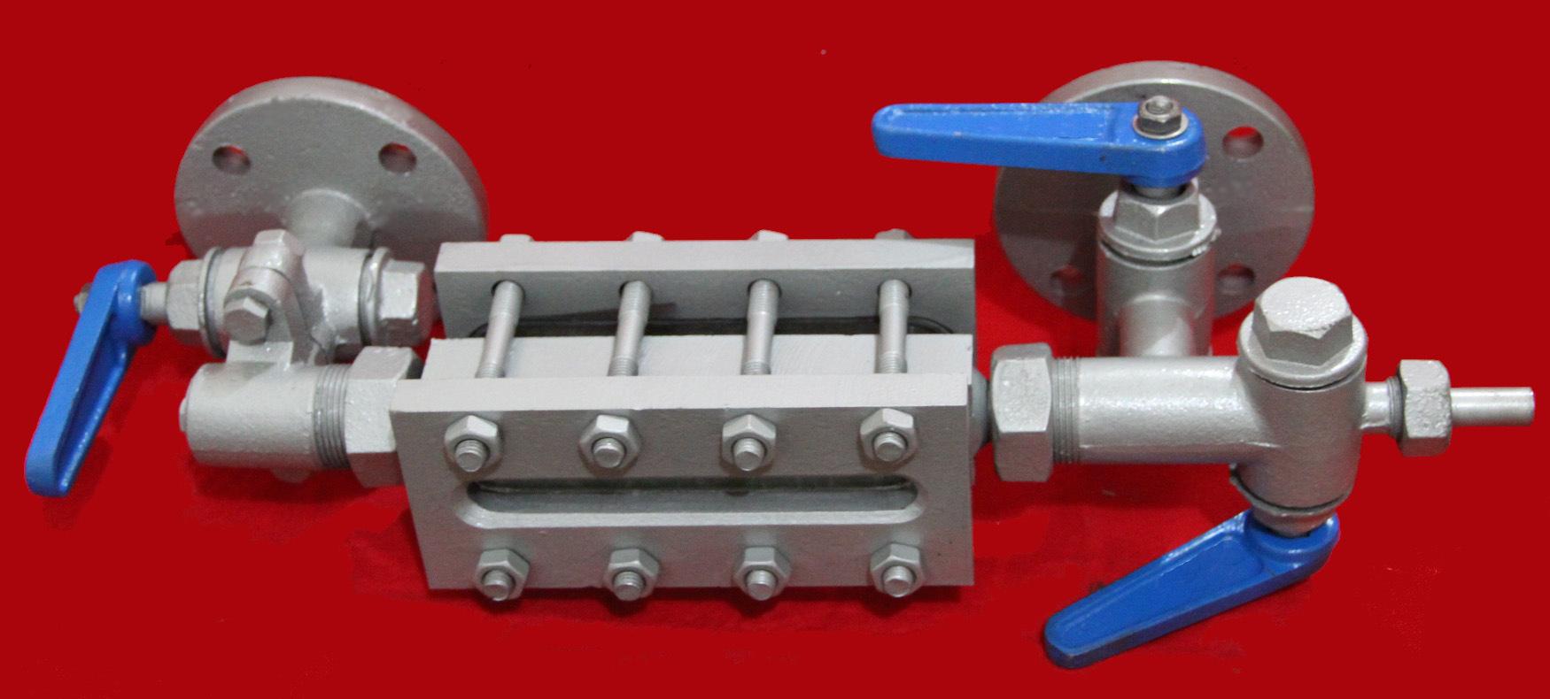 儀表的上下閥上裝有法蘭接頭,與容器連接構(gòu)聯(lián)通器,透過(guò)玻璃板直接指示容器,液位,“夾套型”設(shè)有加熱或冷卻裝置。該裝置加熱時(shí)可用蒸氣,冷卻時(shí)可用循環(huán)水,這樣可以調(diào)節(jié)流動(dòng)性能,夾套型接管尺寸ZG1/4內(nèi)螺紋。