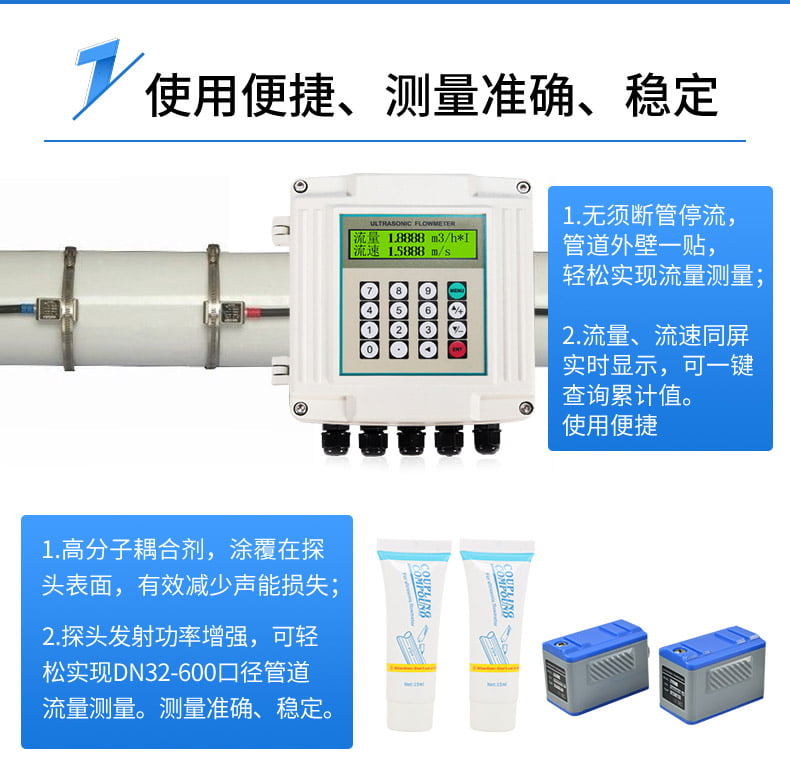 外夾式超聲波流量計(jì)是采用進(jìn)口集成電路貼裝而成,電路全部完成數(shù)字化、集成化,提高測(cè)量精度、測(cè)量穩(wěn)定性、大大減少了故障維護(hù),是目前國(guó)內(nèi)**技術(shù)、性能zui穩(wěn)定、安裝zui方便的一款低功耗流量測(cè)量?jī)x表,根據(jù)多年的經(jīng)驗(yàn)總結(jié),以及產(chǎn)品的不斷更新?lián)Q代,目前新版本的超聲波流量計(jì)其功能強(qiáng)大、運(yùn)算速度快、抗干擾能力強(qiáng),周期采樣次數(shù)高達(dá)128次,**應(yīng)用于工業(yè)現(xiàn)場(chǎng)中的各種液體流量的在線計(jì)量。