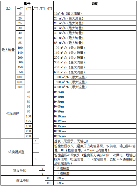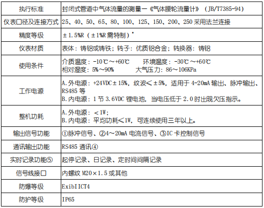 3、氣體腰輪流量計基本參數(shù)