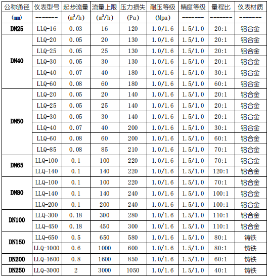 3、始動流量小,量程比寬,適合于計量符合變動大的氣體流量。