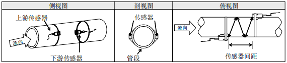 外夾式超聲波流量計安裝方式共有三種。這三種方式分別稱為V法、Z法和N法。 一般在小管徑100~300mm(4"~12")時可先選用V 法;V法測不到信號或信號質(zhì)量差時則選用Z法;管徑在 300mm(12")以上或測量鑄鐵管時應(yīng)優(yōu)先選用Z法。