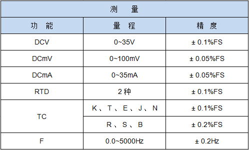 ●8種熱電偶( K 、 E 、 T 、 J 、 S 、 R 、 N 、 B )的測量和輸出, 2 種熱電阻( PT100 、 Cu50 )的測量;