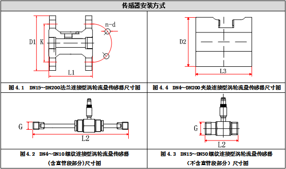 渦輪流量計對管道內(nèi)流速分布畸變及旋轉(zhuǎn)流是敏感的,進入傳感器應(yīng)為充分發(fā)展湍流,因此要根據(jù)傳感器上游側(cè)阻流件類型配備必要的直管段或整流器,要求入口段和出口段直管段長度。
