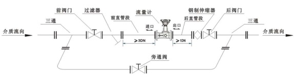 5、當(dāng)被測氣體中含有雜質(zhì)時,應(yīng)在流量計(jì)前端安裝裝過濾器或過濾網(wǎng),但仍應(yīng)保證儀表前的直管段要求。