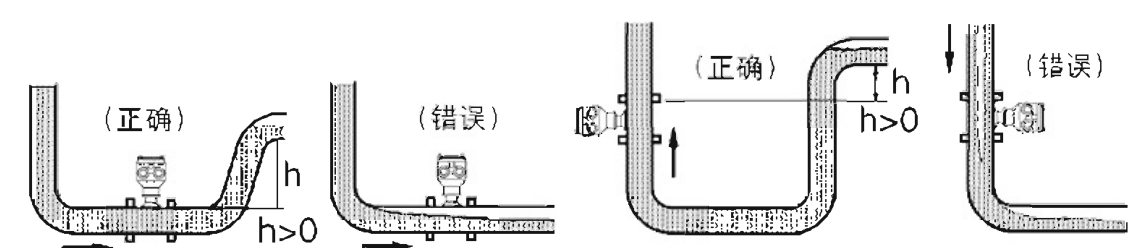 假如有氣泡九如丈量管,流量顯現(xiàn)會遭到影響,而且還會呈現(xiàn)丈量錯誤。當流體中含有氣泡時,管路設(shè)計時必需避免氣泡積聚在丈量管中。假如在丈量管左近存在閥門,應(yīng)盡量將管布置在閥門上游,可防止壓力減小產(chǎn)生氣泡。