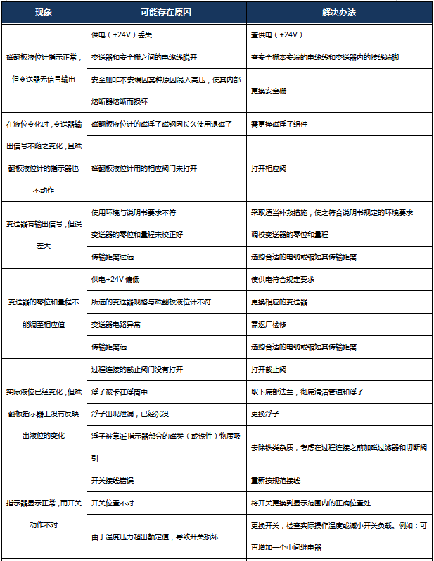 三、磁翻板液位計常見毛病