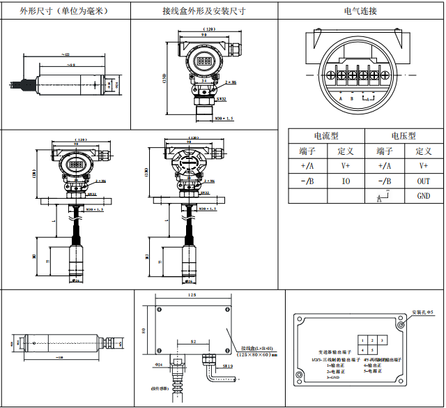 二、投入式液位變送器外形結(jié)構(gòu)及電氣連接