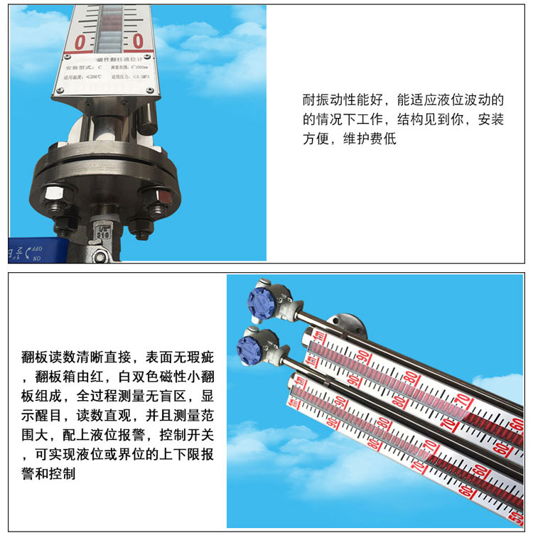 4、耐強(qiáng)腐蝕型磁性翻板液位計(jì):所有與介質(zhì)接觸的零部件均采用鋼塑復(fù)合管。所有能適用于各種強(qiáng)腐蝕介質(zhì)的液位測(cè)量和控制。